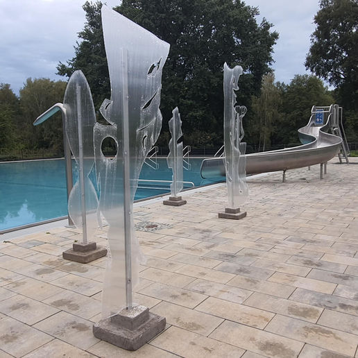 Über den Beckenrand, Ausstellung im öffentlichen Raum, Freibad Kiebitzberge, Kleinmachnow